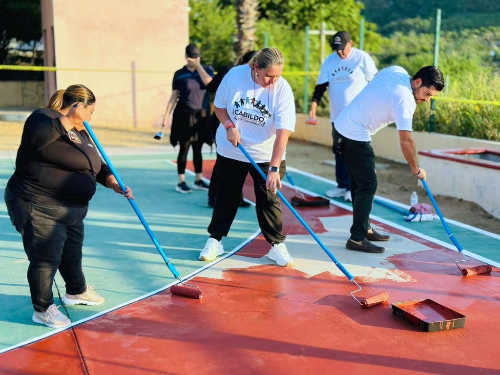 Los Cabos, Baja California Sur.- Con el objetivo de mejorar los espacios públicos del municipio, integrantes del Cabildo de Los Cabos pusieron en marcha el programa “Cabildo en tu Comunidad”, iniciando con la rehabilitación de la cancha de baloncesto del parque de la colonia Country del Mar, en San José del Cabo.