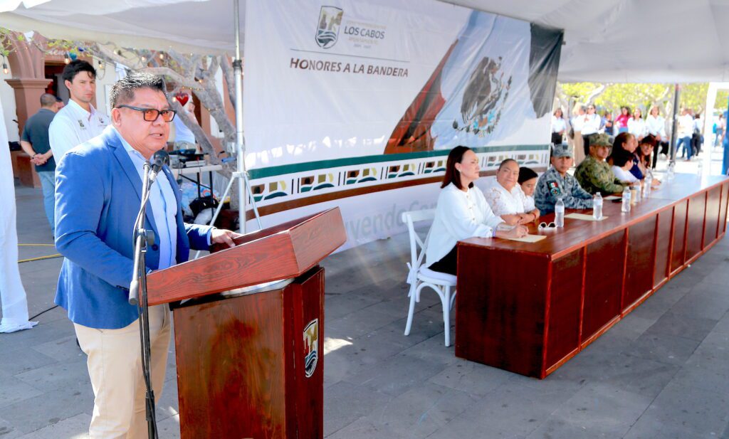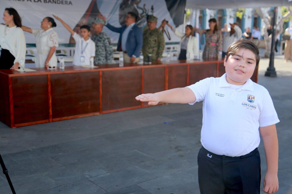 Durante la ceremonia de honores a la bandera en la explanada de palacio municipal, en San José del Cabo, Zeus Yaroslav Iñiguez Torrealba, síndico del Cabildo Infantil, expresó que las infancias representan el presente y futuro de la comunidad, por lo que exhortó a las personas adultas a escuchar, apoyar y velar por sus derechos.