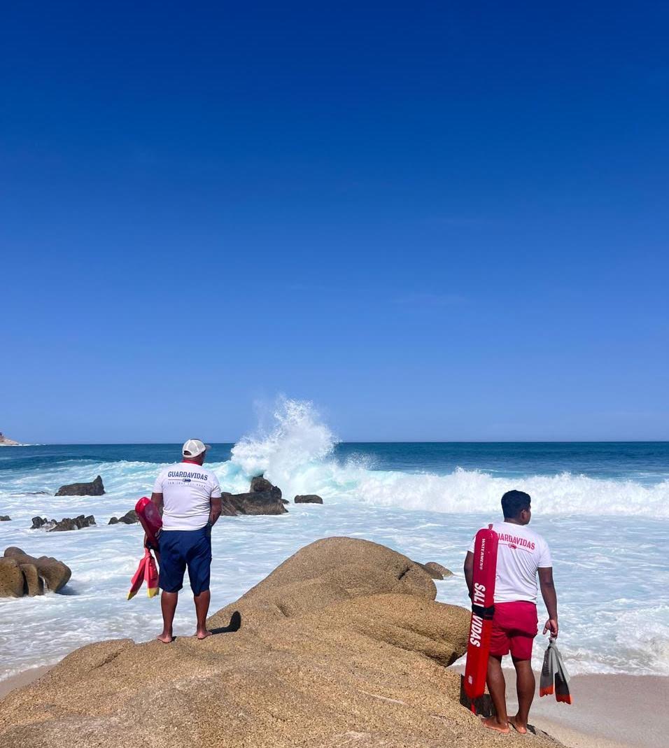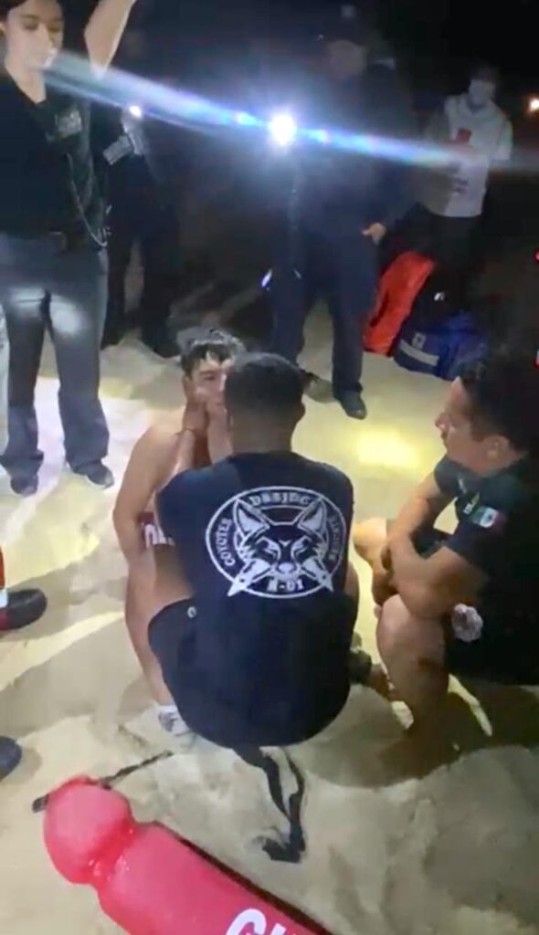 En el lugar, los elementos trabajaron de manera coordinada con salvavidas del grupo Vidanta, logrando ubicar al joven aproximadamente a 150 metros mar adentro. Un rescatista ingresó al agua con el equipo necesario para brindarle auxilio, apoyado por otros guardavidas, ante las condiciones de baja visibilidad y oleaje.