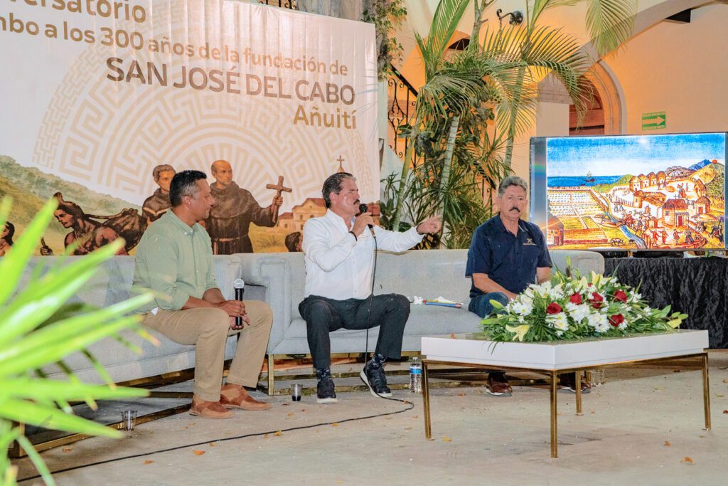 Los Cabos, Baja California Sur.– El patio del Palacio Municipal fue el escenario del conversatorio “Rumbo a los 300 años de fundación de San José del Cabo”, un encuentro que permitió a los asistentes realizar un viaje histórico hacia las épocas previas y posteriores a 1730. Este evento, cuyo tema central fue el origen de la actual cabecera municipal, fue impulsado por el titular de la Crónica Municipal, Aníbal Amador Castro y contó con la asistencia del titular de la dirección general de Desarrollo Social Carlos Castro Cerseña en representación del alcalde Chistian Agúndez Gómez.