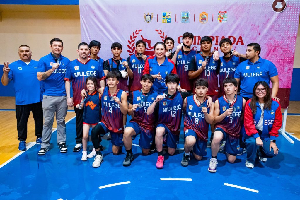 La alcaldesa también celebró el logro del selectivo varonil mulegino, que obtuvo la medalla de plata, felicitando particularmente al entrenador Dr. Nicolás Miranda, al asistente Ricardo Almanza, al coordinador municipal de básquetbol Kareem Meza, así como a las madres y padres de familia que acompañaron a los jugadores en todo el proceso competitivo.