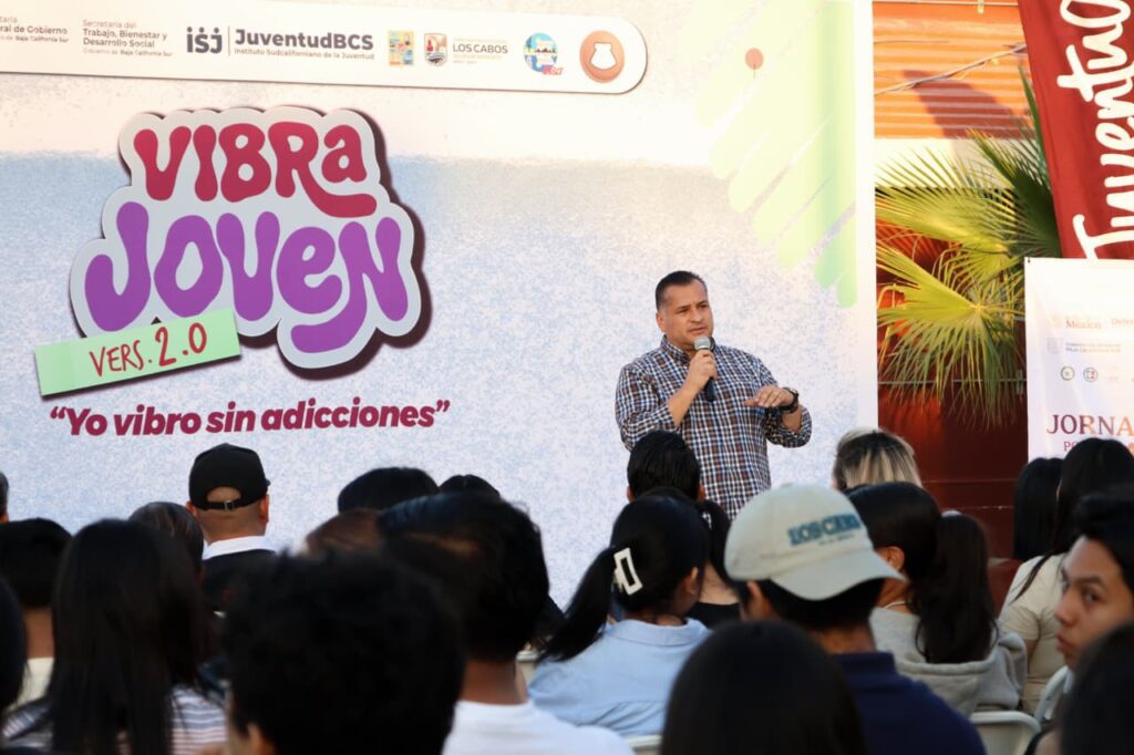 En el marco de las Jornadas por La Paz y la feria “Yo vibro sin adicciones”, el secretario general de Gobierno, José Saúl González Núñez, encabezó un encuentro con estudiantes de la Universidad Autónoma de Baja California Sur (UABCS), campus Cabo San Lucas, con el objetivo de fortalecer la cultura de paz y promover el bienestar social.