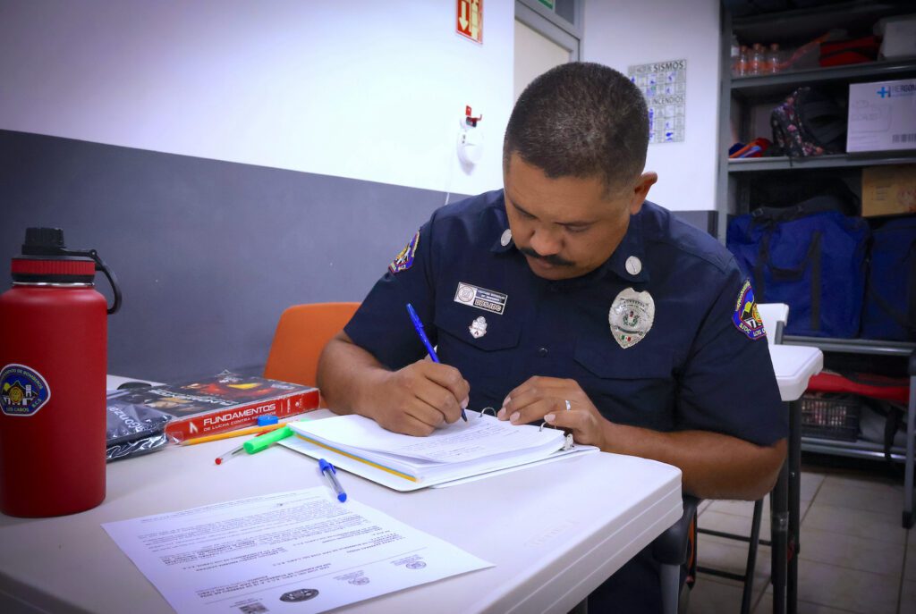 La capacitación se basa en el manual de Fundamentos de Lucha contra Incendios (IFSTA), adaptando sus lineamientos a la realidad local, lo que permite “tropicalizar” técnicas y procedimientos a los distintos escenarios que se presentan en la cabecera municipal.