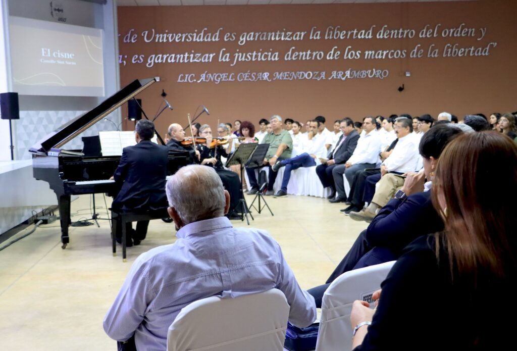 La Universidad Autónoma de Baja California Sur (UABCS), como parte de sus festejos por el 50 aniversario, llevó a cabo el concierto “Los pianistas”, una velada musical que reunió a destacadas figuras del ámbito artístico sudcaliforniano en el Poliforo Cultural Universitario Lic. Ángel César Mendoza Arámburo.