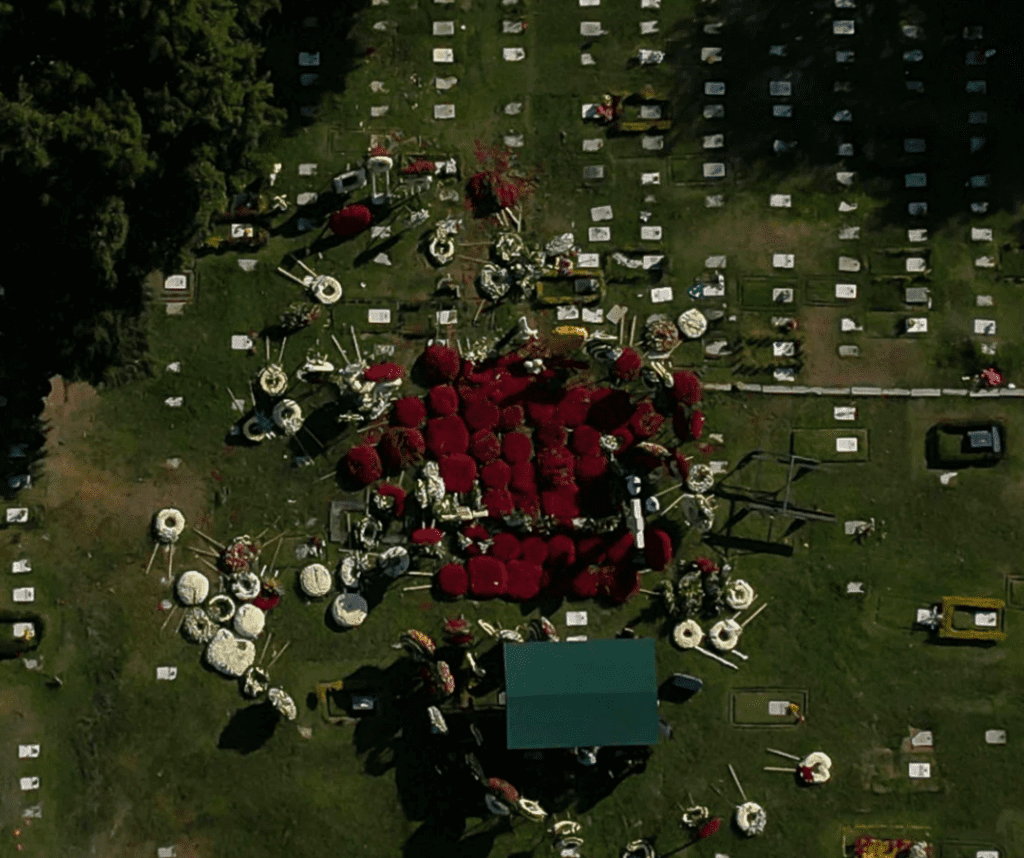 Durante el velorio, que se realizó en una funeraria de la zona metropolitana, llegaron decenas de arreglos florales, algunos con referencias visibles al CJNG. La logística incluyó incluso grúas para transportar coronas de gran tamaño hasta el camposanto.