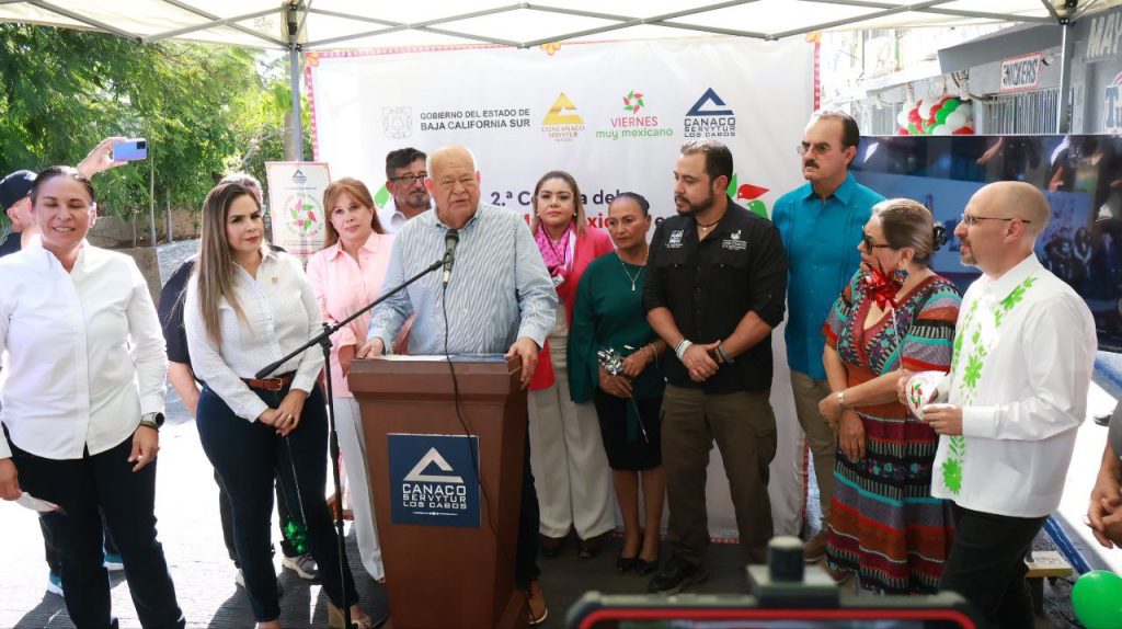 El gobernador Víctor Manuel Castro Cosío, acompañado del presidente de la Confederación de Cámaras Nacionales de Comercio, Servicios y Turismo (CONCANACO-SERVYTUR), Octavio de la Torre de Steffano, presentó en el municipio de Los Cabos la estrategia nacional “Viernes Muy Mexicano”, una iniciativa orientada a impulsar el consumo interno y respaldar a los negocios locales, promoviendo la compra de productos y servicios en colonias y comunidades de todo el país.