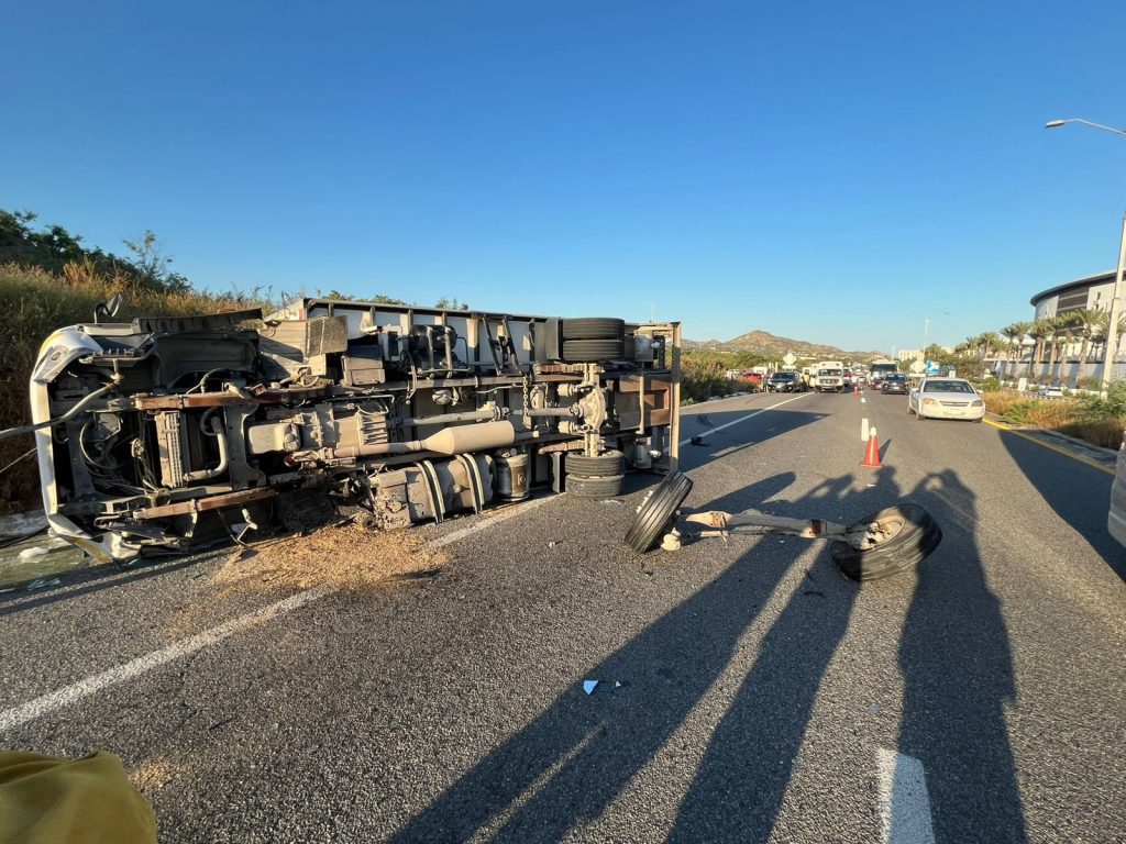 Los Cabos, B.C.S.– La tarde de este miércoles se registró un accidente de tránsito tipo volcadura sobre el Corredor Turístico, en el tramo con dirección a Cabo San Lucas, antes del puente de El Tule, dejando como saldo dos personas lesionadas.