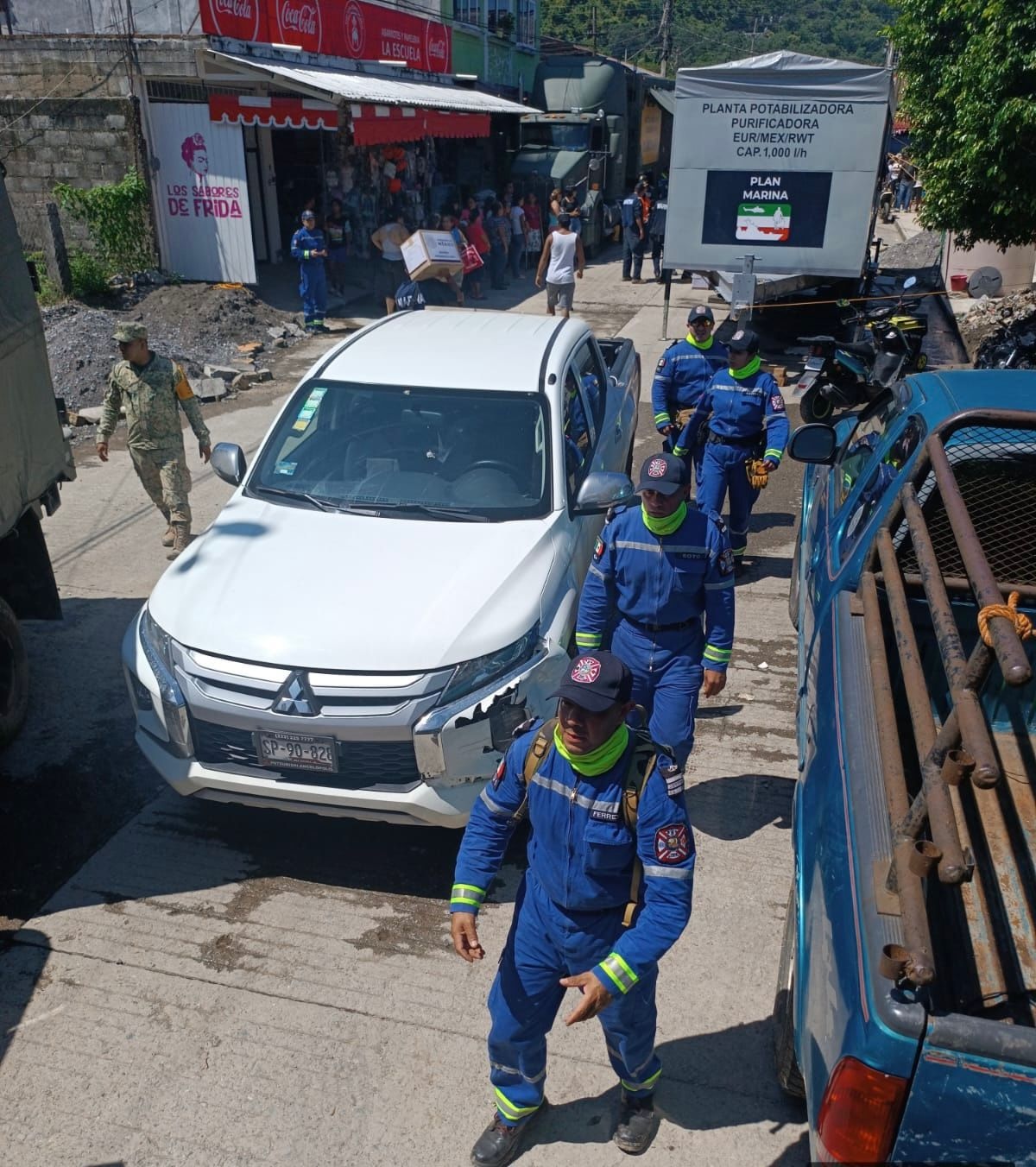 Las fuerzas federales, estatales y municipales continúan desplegadas en las zonas afectadas con personal, maquinaria y equipo especializado para el restablecimiento de servicios, la apertura de caminos y la rehabilitación de infraestructura básica.