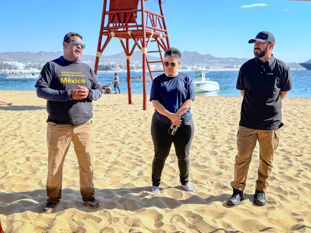 Explicó que este tipo de ejercicios permite reforzar la coordinación entre instituciones y evaluar los protocolos de actuación en caso de que alguna ballena quede enmallada durante su tránsito por el litoral de Los Cabos, especialmente durante la temporada de avistamiento.
