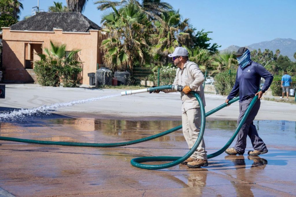 Los Cabos, Baja California Sur.– Con el propósito de fortalecer las acciones de conservación ambiental y mejorar los espacios públicos, personal operativo de la Zona Federal Marítimo Terrestre (Zofemat) Los Cabos, en coordinación con el equipo de Puerto Los Cabos, realizó una jornada de limpieza y mantenimiento en el área del estacionamiento de La Playa.